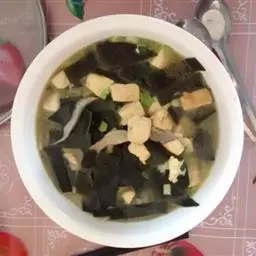 豆腐海带汤是一道色香味俱全的传统名肴,属于北京菜。将豆腐切丁,菠菜切段,海带切丝;锅内放入开水,加…