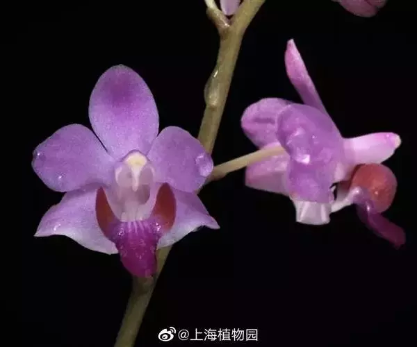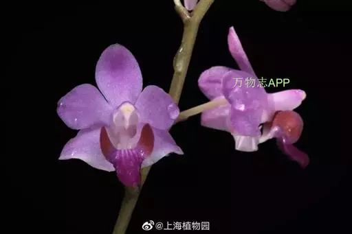 五唇兰(学名:Doritis pulcherrima Lindl.):又称五舌兰,叶丛生,肉质状。基部关节明显,无明显茎。花葶抽生于基部,疏生十余朵小花,花为紫红色,花型奇特。茎很短,具3-6枚近基生的叶。叶上面绿色,背面淡绿或淡紫色,长圆形。花序直立,圆柱形,高出叶外;总状花序长10-13厘米,疏生数朵花;花通常具香气,开放,萼片和花瓣淡紫色;花瓣近倒卵形,比中萼片稍小;唇瓣5裂,基部具弯曲向上而长4毫米的爪。花期7-8月。
