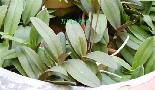 五唇兰茎很短,具3-6枚近基生的叶。叶上面绿色,背面淡绿或淡紫色,长圆形,长5-7。5厘米,宽1。5-2厘米,先端钝或锐尖,基部具彼此套迭的鞘。