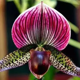紫纹兜兰 Stein)是兰科兜兰属的地生或半附生植物。叶基生,叶片狭椭圆形或长圆状椭圆形,…