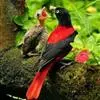朱鹂:中等鸟类,体长23-28厘米。雄鸟绛紫红色,头、上胸及翼黑色。雌鸟上背及背部深灰色,…