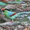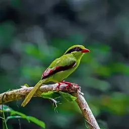 蓝绿鹊:中型鸟类,共有5个亚种。体长36-38厘米。尾长,嘴、脚红色。通体羽色主要为草绿色,…