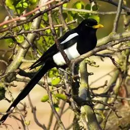 喜鹊:是鸦科、鹊属的一种鸟类。共有11个亚种。体长40-50厘米,雌雄羽色相似,…