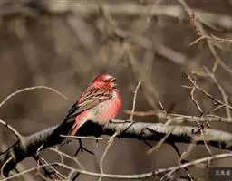 红眉朱雀:体长15厘米,是一种中等体型的朱雀。上体褐色斑驳,眉纹、脸颊、胸及腰淡紫粉,臀近白。…