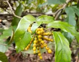 花两性,具芳香,呈聚伞花序簇生枝顶或枝条上部;花具长柄,花萼3枚,短小;花瓣6枚,披针形,长2.5-3厘米,2轮排列,呈星形,黄绿色;雄蕊多数;雌蕊心皮离生,多数。核果椭圆形,熟时红黑色,多个聚生,具柄。种子纵向凹槽。花期5-6月,果期9-10月。