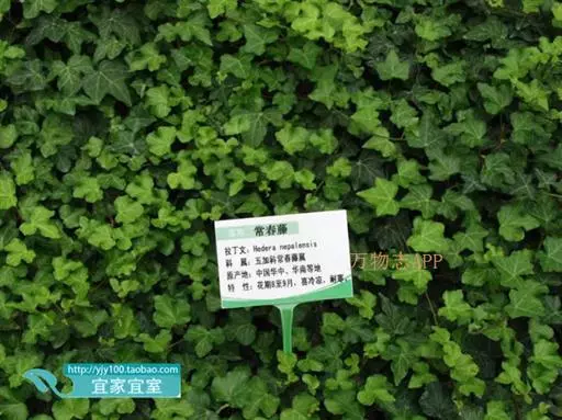 中华常春藤,常绿攀援藤本。老枝灰白色,幼枝淡青色,被鳞片状柔毛,枝蔓处生有气生根。 常春藤 叶 革质,深绿色,有长柄,营养枝上的叶三角状卵形,全缘或三浅裂;花枝上的叶卵形至菱形。9~11月开花,花小,淡绿白色,有微香。核果圆球形,橙黄色,次年4~5月成熟。分布于我国华中、华南、西南及陕、甘等省。 极耐阴,也能在光照充足之处生长。喜温暖、湿润环境,稍耐寒,能耐短暂的-5~-7℃低温。对土壤要求不高,但喜肥沃疏松的土壤。 中华常春藤枝蔓茂密青翠,姿态优雅,可用其气生根扎附于假山,墙垣上,让其枝叶悬垂,如同绿帘,也可种于树下,让其攀于树干上,另有一种趣味。 通常用扦插或压条法繁殖,极易生根,栽培管理简易。