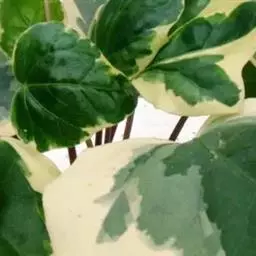 叶长10~12厘米,宽10厘米,阔卵形,全缘,下部叶偶见3裂,革质,绿色,有光泽,果实大。主要变种有直立革叶常春藤(var.arborescens):直立灌木,不攀缘。多裂草叶常春藤(var.dentata):叶具很多小缺裂。紫革叶常春藤:叶色深绿,带紫色