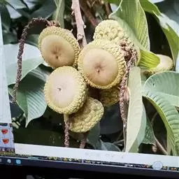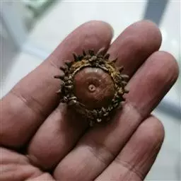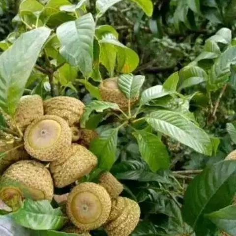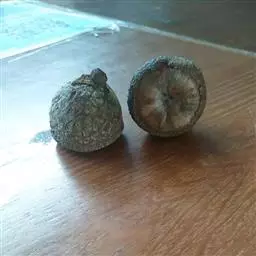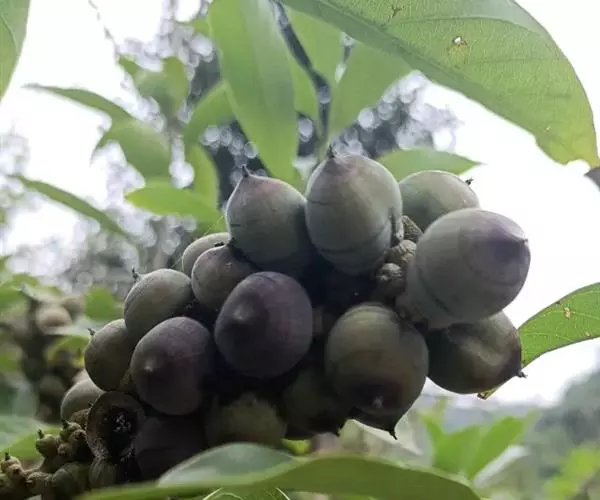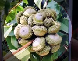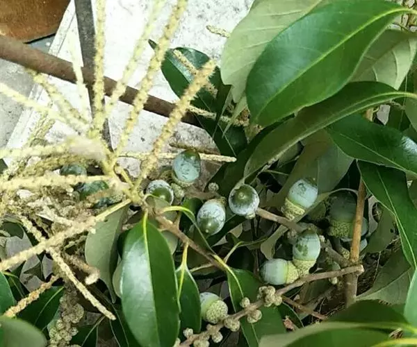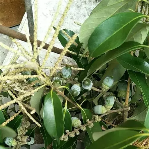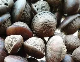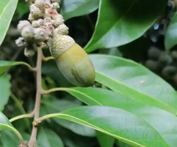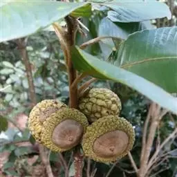 坚果椭圆形,高12-25毫米,宽8-15毫米,顶端尖,或长卵形,有淡薄的白色粉霜,暗栗褐色,果脐深达2毫米,口径3-5毫米,很少达8毫米。花期7-11月,果次年同期成熟。