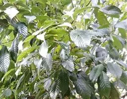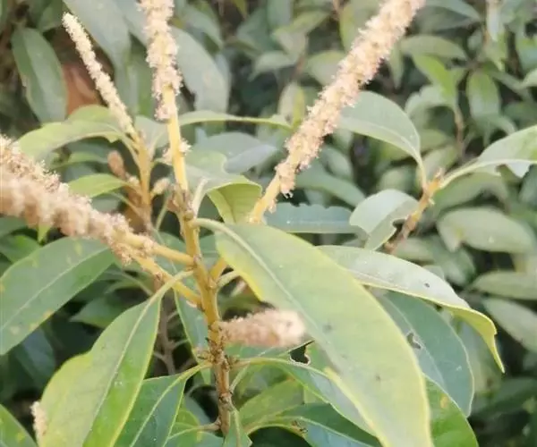 乔木,高15米,胸径40厘米,一年生枝、嫩叶叶柄、叶背及花序轴均密被灰黄色短绒毛,二年生枝的毛较疏且短,常变为污黑色。叶革质或厚纸质倒卵形、倒卵状椭圆形或长椭圆形,长6-14厘米,宽2.5-5.5厘米,顶部突急尖,短尾状,或长渐尖,基部楔形,上部叶缘有2-4个浅裂齿或全缘,中脉在叶面微凸起,侧脉每边很少多于10条,支脉通常不明显,成长叶背面无毛或几无毛,有较厚的蜡鳞层;叶柄长1-2厘米.