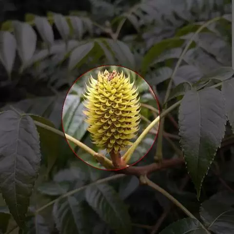 羽状复叶,穗状花序,果序呈球果状,直立枝端经久不落,在落叶阔叶树种中具有特殊的观赏价值,在园林绿化中可作为点缀树种应用。