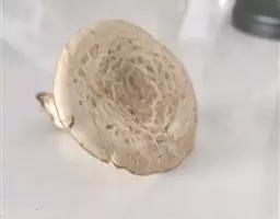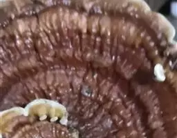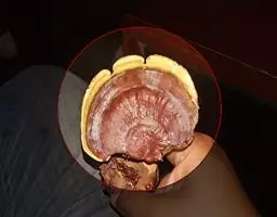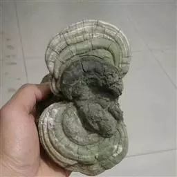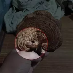 灰树花在不良环境中形成菌核,菌核外形不规则,长块状,表面凹凸不平,棕褐色,坚硬,断面外表3~5毫米呈棕褐色,半木质化,内为白色。子实体由当年菌核的顶端长出。