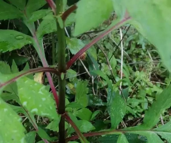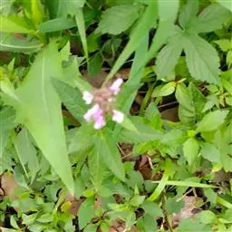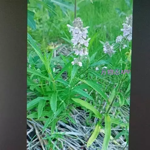 叶:茎叶长圆状宽披针形,长5-10厘米,宽1-2.3厘米,先端微急尖,基部圆形至微心形,边缘为圆齿状锯齿,上面绿色,下面灰绿色,两面均无毛,叶柄明显,长3-17毫米,近茎基部者最长,向上渐变短;苞叶披针形,无柄,近于全缘,向上渐变小,最下部者超出轮伞花序,上部者等于或短于轮伞花序。