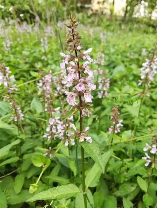 水苏(学名:Stachys japonica Miq.),是唇形科水苏属多年生草本。植株高20-80厘米,有在节上生须根的根茎。茎单一,直立,四棱形,具槽,在稜及节上被小刚毛,余部无毛。茎叶长圆状宽披针形,长5-10厘米,宽1-2.3厘米,叶柄明显,长3-17毫米;苞叶披针形,无柄,近于全缘;轮伞花序,6-8花;小苞片刺状,微小,无毛;花梗短,长约1毫米,疏被微柔毛;花萼钟形,花冠粉红或淡红紫色,雄蕊4,花丝丝状,花药卵圆形,花柱丝状,花盘平顶;子房黑褐色,无毛;小坚果卵珠状,棕褐色,无毛。花期5-7月,果期7月以后。产于辽宁、江苏、日本等地,生于海拔230米以下的水沟、河岸等湿地上。