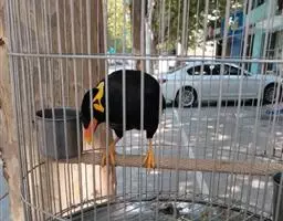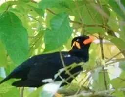 金冠树八哥为椋鸟科树八哥属的鸟类。体长约23厘米,闪辉黑色。特征为具翼斑及颏黄色,脸颊裸露皮肤粉黄色。…