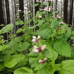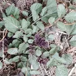 多年生草本,高10—25 cm。茎多数,四棱形,斜升或平卧地面,密被倒向微柔毛。茎下部叶宽卵形至长卵形,长1.5—3.5Cm,宽0.7——2cm,先端钝或圆形,基部心形或截平,边缘具浅圆齿,两面有毛,茎中部叶具等长或短于叶片的叶柄,叶片与茎下部叶同形,茎上部叶变小。