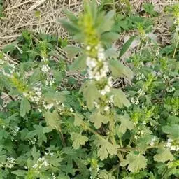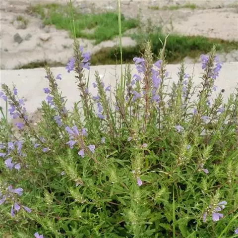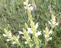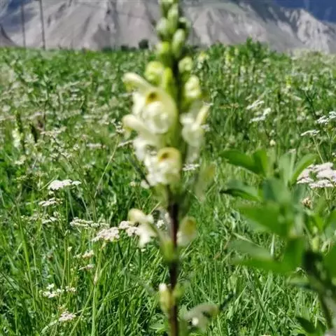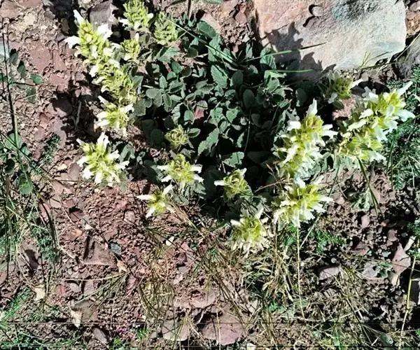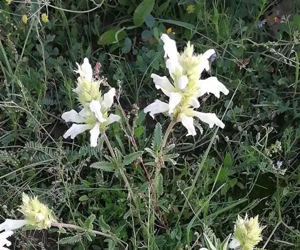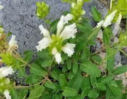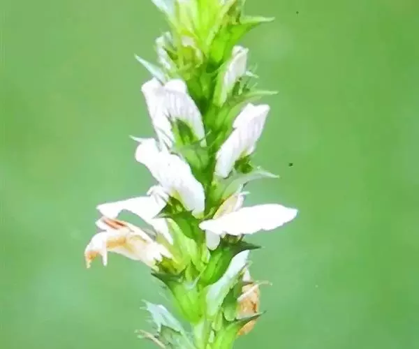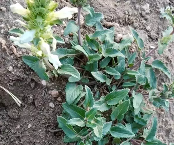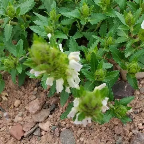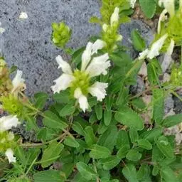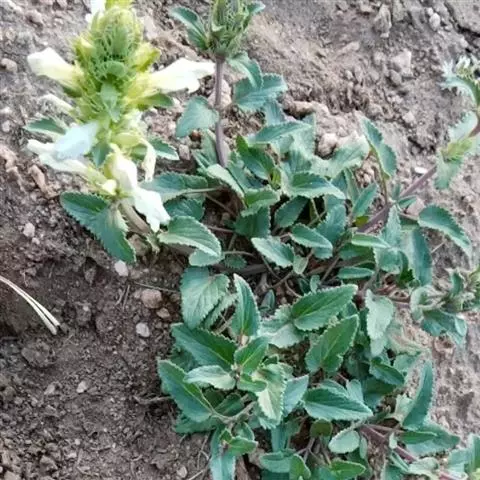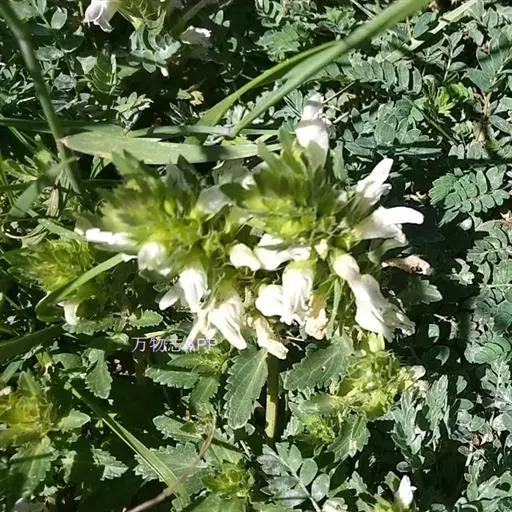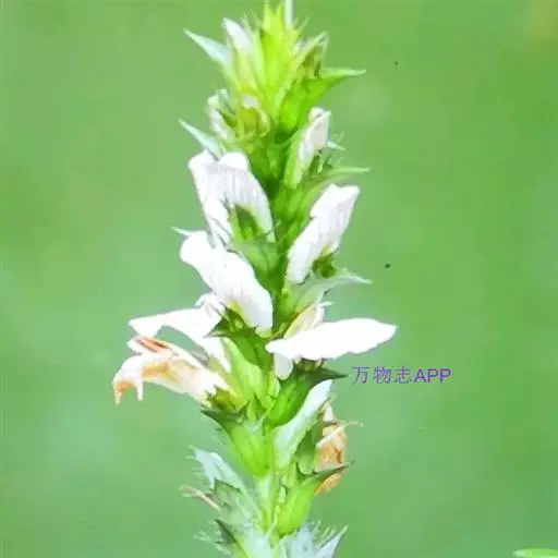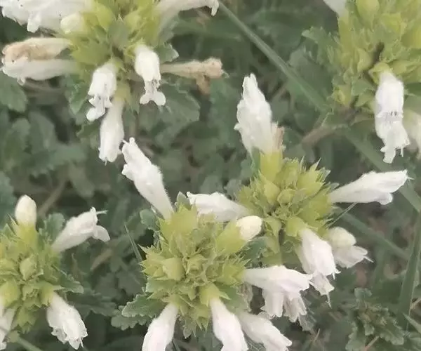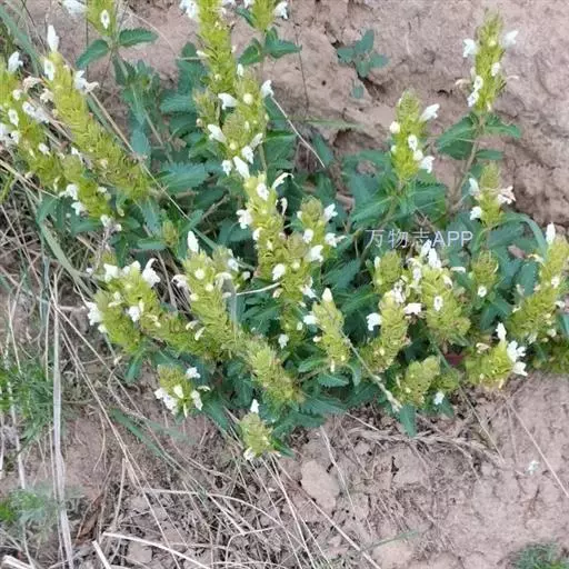 异叶青兰,又名:白花枝子花。多年生草本,高5~40厘米。直根系。茎四棱形,直立或倾斜,多由基部分枝斜上生长,淡紫色或绿色,有倒向短毛。叶对生,有长柄,卵形或卵状披针形,长1~3厘米,宽O.8~1.5厘米,先端钝,基部常为截形、心形或楔形,边缘具圆锯齿。花集生于茎顶呈穗状,每轮通常由4~6花组成;苞片为椭圆状披针形,边缘具齿,齿先端有芒状刺;花萼管状,长约1厘米或过之,无毛,2唇形,5齿裂,下唇短于上唇;花冠近漏斗状,中部以下呈管状,长约2厘米,2唇形,下唇较短,3裂,中裂片有块刻,白色、谈绿色,上唇稍带粉红;雄蕊4,略出于花冠外。小坚果4,黑色,三棱形,稍扁,长2.5毫米,上端截形,下端略锐。花期6~7月。