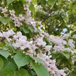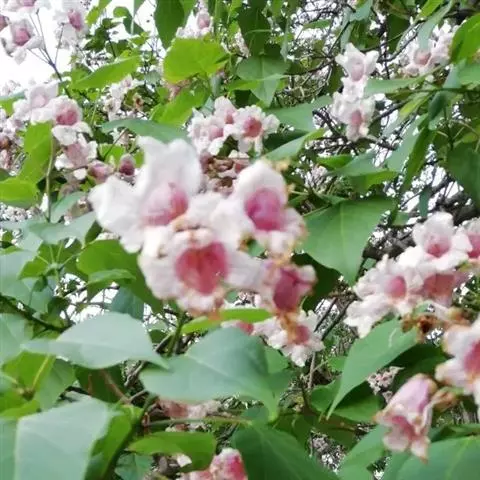 灰楸(Catalpa fargesii Bur.)是紫葳科梓属植物,乔木,高可达25米;幼枝、花序、叶柄均有分枝毛。叶片厚纸质,顶端渐尖,叶幼时表面微有分枝毛,背面较密,以后变无毛;顶生伞房状总状花序,有花。花萼片近基部,裂片卵圆形。花冠淡红色至淡紫色,内面具紫色斑点,钟状,花丝着生于花冠基部,花药广歧,花柱丝形,细长,蒴果细圆柱形,下垂,果爿革质,种子椭圆状线形,3-5月开花,6-11月结果。