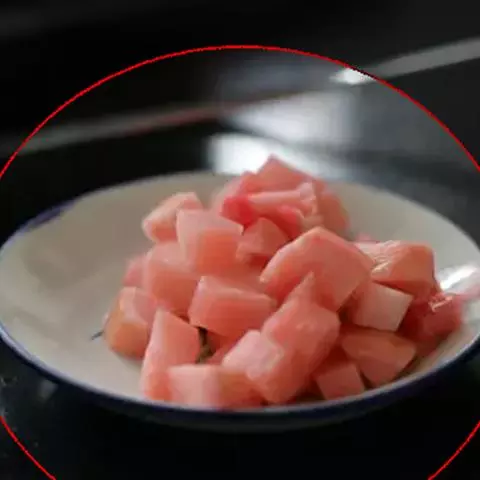 3、广味腊肉味道偏甜,烹调前要用沸水煮软,一来容易切成片,二来腊肉容易煸出油。