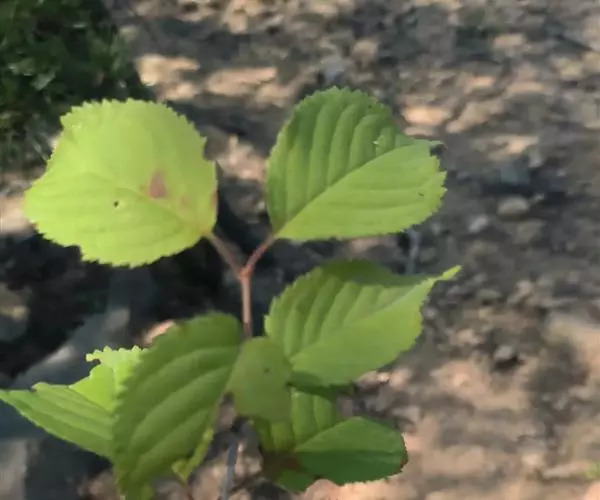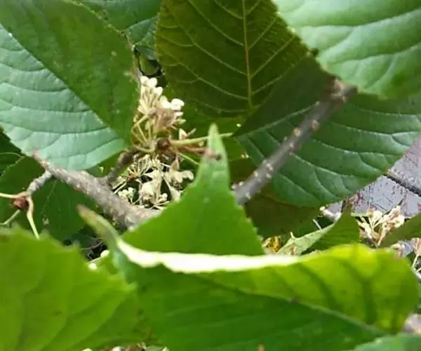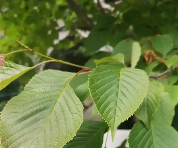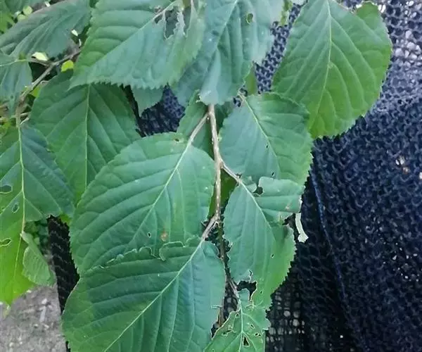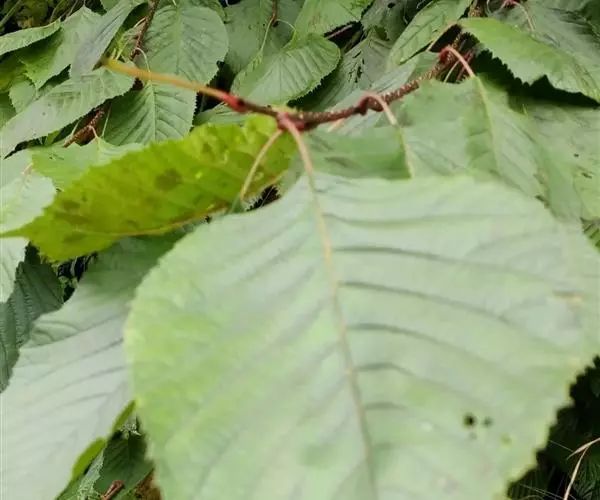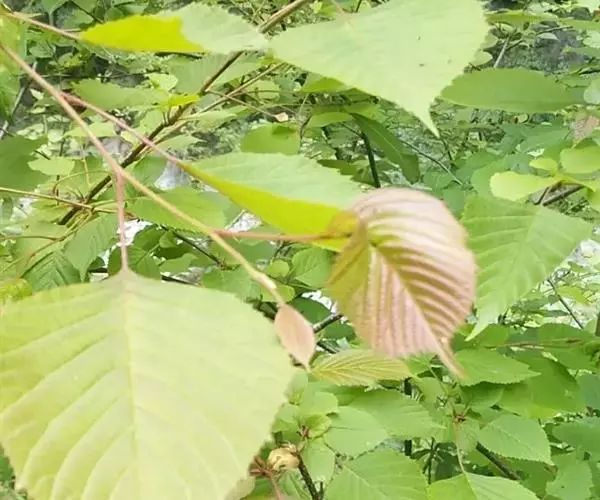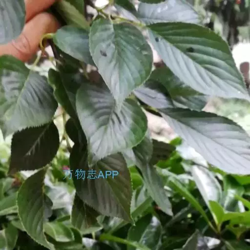 落叶灌木或小乔木,高2-15米;树皮紫黑色或棕灰色;小枝无毛,紫黑色或灰色;芽卵形,鳞片深褐色,光亮。叶纸质,卵形或近圆形,少数椭圆卵形或椭圆披针形,长5-14厘米,宽3-9厘米,先端渐尖,有1突生尾尖,长1-1.5厘米,基部楔形或宽楔形,边缘疏生顶端加厚的锯齿,下部或近基部全缘,上面无毛或散生柔毛后脱落,仅在脉上残存,下面无毛或脉上有伏毛,脉腋具丛毛,侧脉6-11对;叶柄长2-5厘米,有柔毛后脱落。