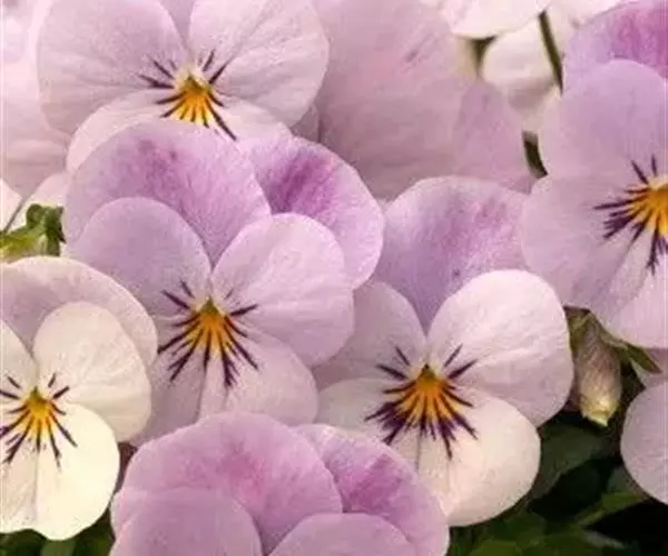 角堇子叶较小,可用200孔穴盘育苗,pH值为5.2-6.2,播种适宜基质是1∶1的泥炭、珍珠岩,用700倍液百菌清与基质混拌可有效防止苗期病害。前一年采收的新种子发芽率一般在90%以上,因此每孔只需播1粒,播后覆盖基质的厚度大体与种子的直径相当。出苗后立即将日/夜温度降至18℃/14℃,以防幼苗徒长。真叶出现后可施用50-75ppm氮肥,随着幼苗长大,氮肥浓度可逐步升高至100ppm。育苗期间应始终保持基质湿润。播后4-5周、4-5片真叶时即可移栽到8厘米营养钵中或定植。