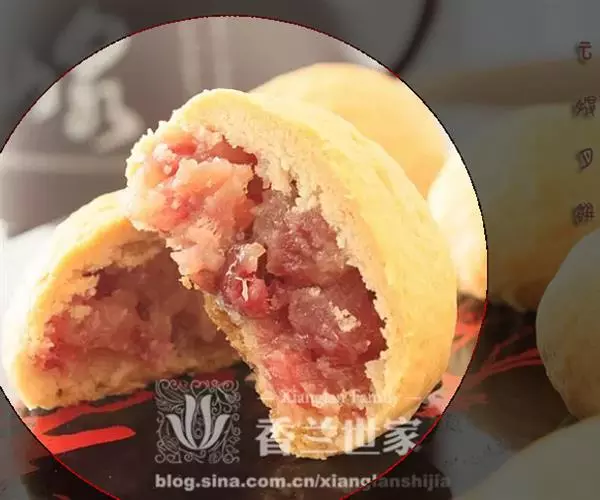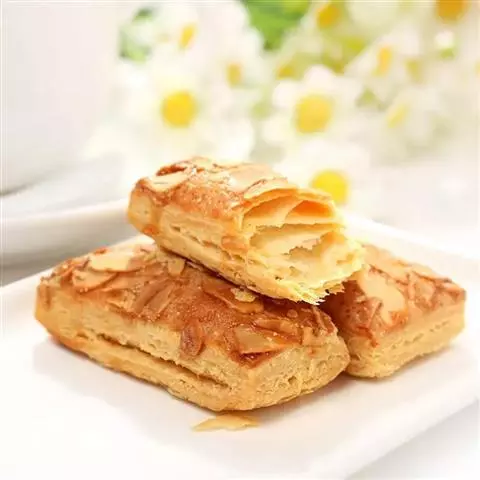 叉烧酥是广东省的地方传统名点,属于粤菜系。由于是烤的,所以它比其他点心较为干身,切开后露出叉烧馅料,渗发出阵阵叉烧的香味。叉烧酥的温度是优劣的关键,拿出后放在烤架拿出后放在烤架上冷却,这个时候的叉烧酥都是很酥很酥的,放进密封盒后会稍软,但是也很好吃。