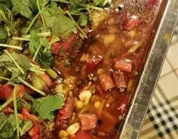 12、锅中上火少许油烧热,下入叉烧肉丁翻炒均匀,加水小火慢慢熬制至叉烧软烂。