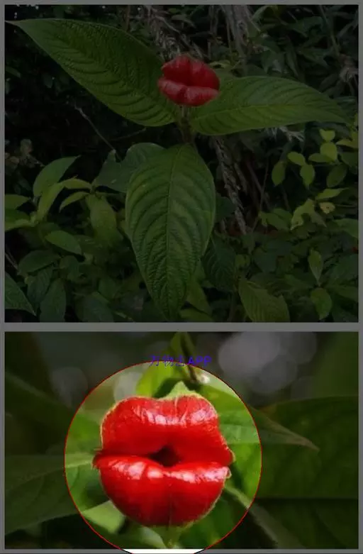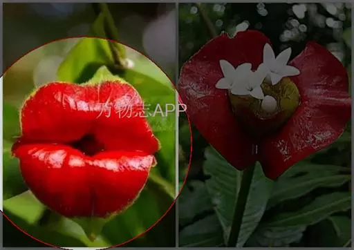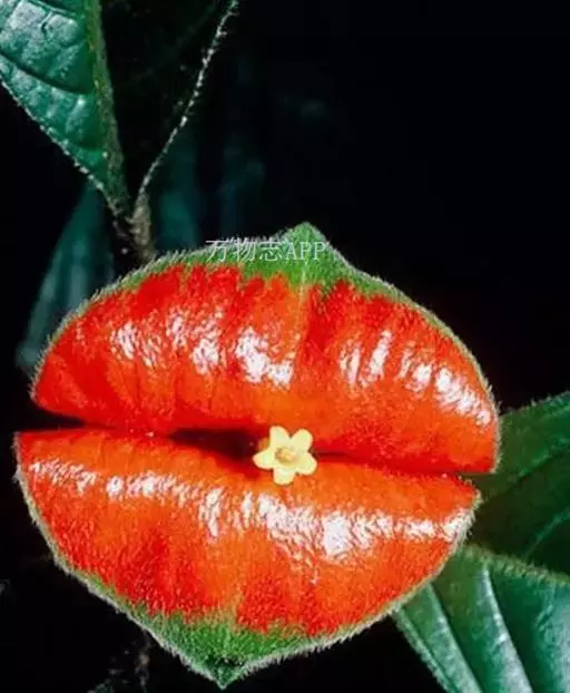 嘴唇花顾名思义,就是花的外形像极了人类性感诱人的嘴唇。形似嘴唇的红色部分并非真正意义上的花瓣,而是花朵的苞片。这种植物颜色鲜红,造型奇特。看似经过技术处理过的,然而,可以很确定它那诱人的嘴唇是天生的。该植物进化为这种形状是为了吸引蜂鸟和蝴蝶等传粉昆虫,花期12月至次年3月。
