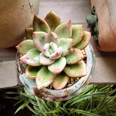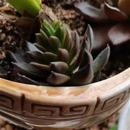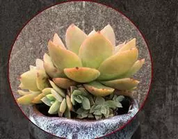 大和锦是景天科拟石莲花属的多肉植物。肉质叶排成紧密的莲座状,广卵形至散三角卵形,背面突起呈龙骨状,…