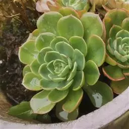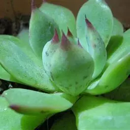 吉娃莲,景天科拟石莲花属,别名:吉娃娃,吉娃莲,植株小型,无茎的莲座叶盘非常紧凑。卵形叶较厚,带小尖,…
