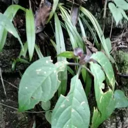 多年生草本。茎上升,细弱,通常不分枝,具3-5节,肉质,无毛,散生紫揭色斑点。叶对生,叶片稍肉质,干时草质,倒卵状披针形,卵状披针形或椭圆状披针形,多少偏斜,长3-15厘米,宽1.2-5厘米,全缘或具疏的波状浅钝齿,基部楔形或狭楔形,通常不对称,上面深绿色,疏生短柔毛,背面绿白色或带紫色,无毛;蠕虫状石细胞少量嵌生于维管束附近的基本组织中:侧脉每侧4-6条;叶柄长2-4厘米,纤细,无毛。