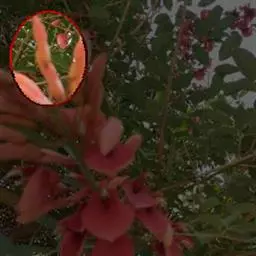 聚伞花序假顶生或腋生,具1-3花;花序梗长0.2-1.2厘米,无毛,总苞球形,直径1-1.4(-2)厘米,顶端具细长尖头,无毛,开放后呈船形;花梗长2-5毫米,无毛;萼片5,线状披针形至长椭圆状披针形,长5-8毫米,宽2-4毫米,无毛。花冠粉红色,具紫色斑点,长3-3.8厘米;筒长2.2-2.8厘米,外面疏生腺状短柔毛,内面基部上方4-5毫米处有一毛环,口部直径15-17毫米,基部上方直径8毫米;上唇长5-8毫米,2浅裂,裂片半圆形,下唇长8-10毫米,3浅裂,裂片半圆形。雄蕊:花丝着生于花冠基部8-11毫米处,狭线形,长11-12毫米,花药长圆形,长(1.1-)1.7-2.5毫米,顶端连着;退化雄蕊2,长4-5毫米,顶端小头状,分离。花盘环状,高1毫米。雌蕊长2-2.5厘米,无毛,子房线形,柱头头状。蒴果线状披针形,长1.7-2.5厘米,宽2.2-3毫米,无毛。花期8-10月,果期10-11月。