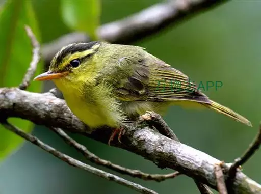 黑眉柳莺 雌雄羽色相似。上体绿色,头顶中央有一条宽阔的淡绿黄色中央冠纹,从额基一直到后颈极为显著,中央冠纹两侧为黑色或灰黑色,形成两条甚为宽阔的黑色侧冠纹,从额基沿中央冠纹两侧到后颈。紧邻侧冠纹有一条黄色眉纹,贯眼纹淡黑色,从眼先经眼到眼后,颊和耳覆羽淡黄色沾绿。背、肩、腰和尾上覆羽橄榄绿色或亮绿色,两翅和尾暗褐色,外缘黄绿色,翅中覆羽和大覆羽尖端淡黄色或淡黄绿色,形成两道黄色翅斑。最外侧一对尾羽内翈羽缘黄白色。下体鲜黄色,两胁沾绿,腋羽和翅下覆羽白色沾黄。 虹膜暗褐色,上嘴褐色或黑褐色,下嘴黄色或橙黄色,脚淡绿褐色或紫绿色。