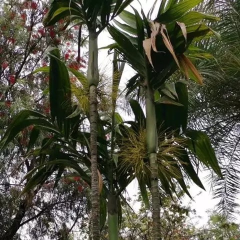 夏威夷椰子是棕榈科金棕属的丛生灌木植物。茎干直立,茎节短而中空,具明显的茎节,…