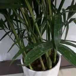 矮棕竹:丛生灌木,高1米或更高些,茎圆柱形,有节,上部被紧密的网状纤维的叶鞘,纤维毛发状,淡褐色。…