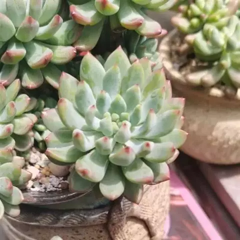 芙蓉雪莲是景天科拟石莲花属的植物。由于叶片表面覆盖着一层厚霜粉,通常呈现出白色;日照增多,…