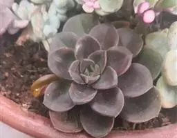 紫珍珠是景天科石莲花属的多年生肉质草本植物。植株中小型;叶片肉质,匙形,呈莲座状紧密排列;叶片粉紫色,…