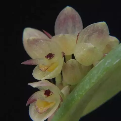 毛药卷瓣兰是兰科石豆兰属的根状茎匍匐。粗约2毫米;根出自生有假鳞茎的根状茎节上、假鳞茎在根状茎上彼此相距,卵状球形;叶厚革质,长圆形了,先端钝并且稍凹入,基部楔形,具短柄或无柄,边缘下弯,在上面中肋下陷;花葶从假鳞茎基部抽出,伞形花序,花序柄纤细,花苞片卵形、舟状,花黄色,中萼片卵形,侧萼片披针形,花瓣卵状三角形,唇瓣肉质,舌形,药帽前缘具短流苏。花期3-4月。毛药卷瓣兰分布于中国台湾、福建北部、浙江中西部、湖北西部、湖南北部、广东北部、广西等地。生于海拔1000-1850米的山地林中树干上或沟谷岩石上。毛药卷瓣兰味苦、淡,性凉,具有润肺止咳,益肾补虚,祛风活血的功效,可用于治疗咳嗽吐血,肾亏体虚,风湿痹痛的症状。
