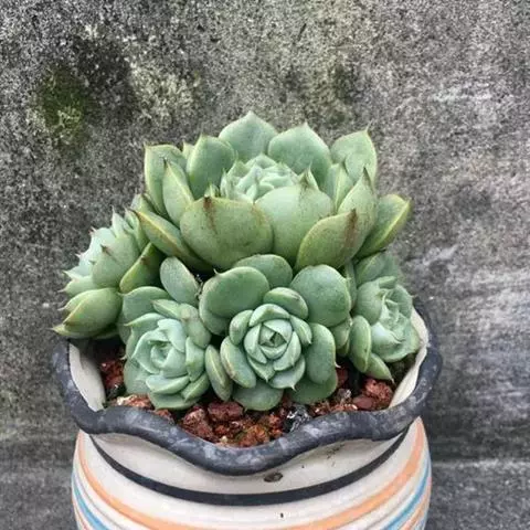 薄叶蓝鸟 叶片蓝绿色,叶尖红色,带粉,花型紧凑,非常漂亮。原产于墨西哥,现世界各地均有栽培。