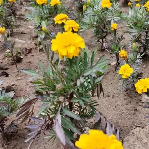 万寿菊是菊科万寿菊属一年生草本植物,别名孔雀菊、缎子花、臭菊花、西番菊、红黄草、小万寿菊、臭芙蓉、孔雀草。万寿菊茎近基部分枝。叶羽状分裂,长5-10厘米,宽4-8厘米,裂片长椭圆形或披针形,具锐齿,上部叶裂片齿端有长细芒,叶缘有少数腺体。头状花序单生,径5-8厘米,花序梗顶端棍棒状。总苞长1.8-2厘米,径1-1.5厘米,杯状,顶端具尖齿。舌状花黄或暗橙黄色,长2.9厘米,舌片倒卵形,长1.4厘米,基部成长爪,先端微弯缺。管状花花冠黄色,长约9毫米,冠檐5齿裂。瘦果线形,被微毛;冠毛有1-2长芒和2-3短而钝鳞片。花期7-9月。万寿菊中国各地均有栽培,在广东和云南南部、东南部已归化,国外原产墨西哥。万寿菊对土壤要求不严,但以肥沃疏松排水良好的土壤为好。耐移栽,种子发芽适温21-24℃,植株生长适合温度为20-29℃。喜温暖和阳光充足的环境,不
