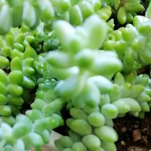 玉米石是景天科、景天属植物。多年生草本多浆植物。植株低矮丛生,多分枝。叶膨大成圆筒形、卵形或近小球形,…