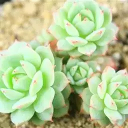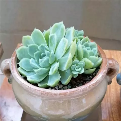 吉娃莲,景天科拟石莲花属,别名:吉娃娃,吉娃莲,植株小型,无茎的莲座叶盘非常紧凑。卵形叶较厚,带小尖,…