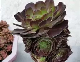 黑法师是景天科莲花掌属植物,自然界不存在分布。紫黑色的叶片呈莲座状层叠排列,给人以庄重神秘之感,…