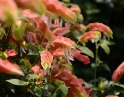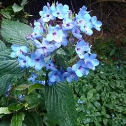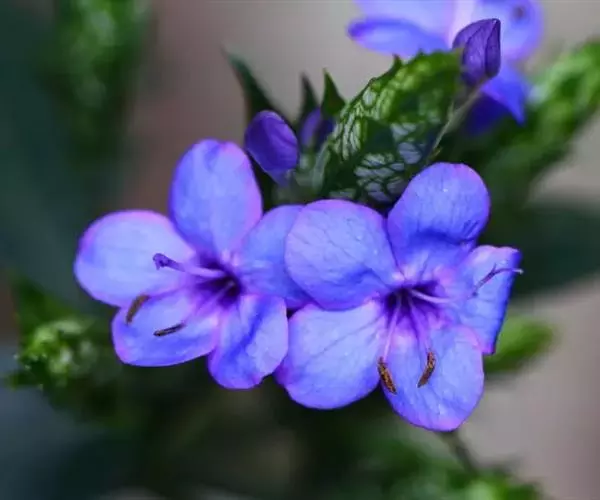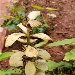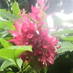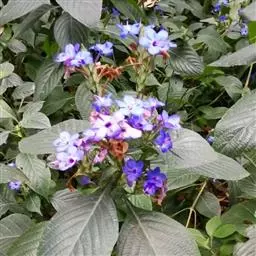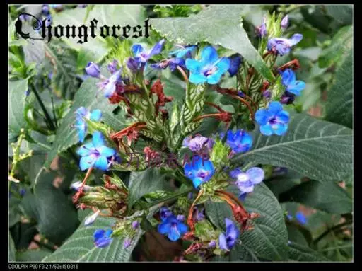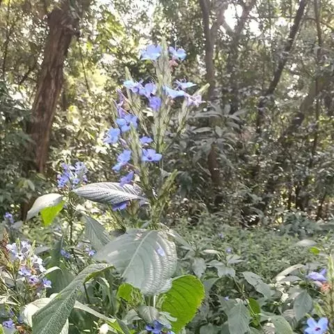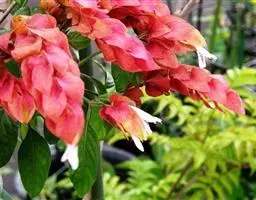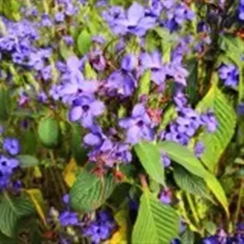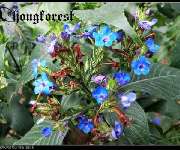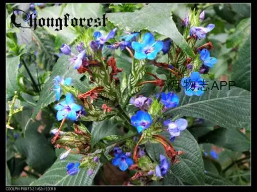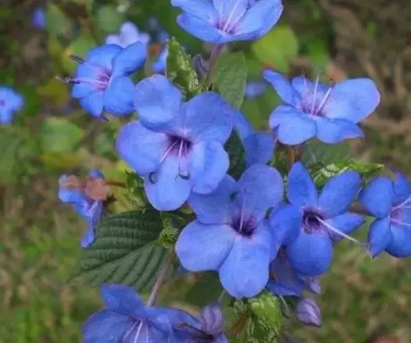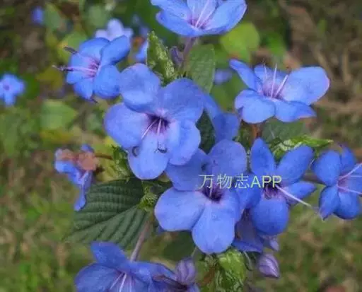 灌木,高可达2米,枝4棱形,无毛或近无毛。叶对生,具叶柄,长1-3厘米;叶片通常卵形,有时椭圆形,长9-20厘米,宽4-8厘米,顶端渐尖或长渐尖,基部圆或宽楔形并下延,两面无毛或近无毛,全缘或有不明显的钝齿,侧脉每边8-10条,连同中肋在叶两面凸起,背面明显。穗状花序顶生和腋生,长3-10厘米,具覆瓦状排列的苞片;苞片大,叶状,白绿色,倒卵形或椭圆形,长1-25厘米,顶端渐尖或短尾尖,具绿色羽状脉,无缘毛;小苞片线状披针形,短于花萼;花萼白色,长6-8毫米;花冠蓝色或白色,高脚碟状,花冠管长约3厘米,外被微柔毛,冠檐裂片5,通常倒卵形,近相等,长约7毫米;雄蕊2枚,稍外露。蒴果长1-1.6厘米,有种子4粒。
