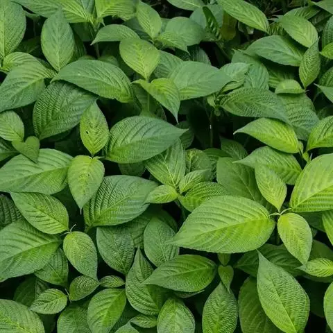 叶皱缩,完整叶片椭圆形至矩圆形,长5-10cm,先端尖锐至短渐尖,基部楔形,下延,边缘微波状或具微圆齿;叶脉明显,小支脉排列整齐几成平行状。气微,味淡。