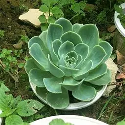 明镜为多年生肉质植物,植株低矮扁平,叶片草绿色,叶边缘生有白色绒毛,叶片无叶柄,呈匙形。 它的叶片比较薄,一点不厚实,叶片上有一层绒毛,叶片呈平板型排列,不会向上聚拢生长,只能不断增大直径。