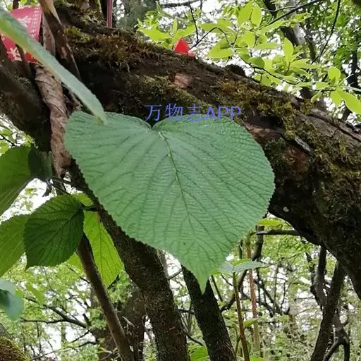 叶纸质,卵形至椭圆状卵形或圆状卵形,长6~13 (~15) 厘米,顶端渐尖或急尖,基部圆形,很少浅心形,边缘有不规则牙齿状尖锯齿,上面无毛或幼时脉上被簇状毛,侧脉6~8对,上面稍凹陷,下面凸起,小脉横列,明显;叶柄长1.5~3 (~4.5) 厘米;托叶钻形,长2~9毫米,基部常贴生于叶柄,有时无托叶。