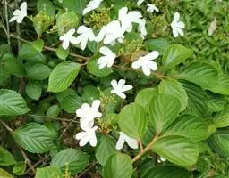 皱叶荚蒾是五福花科荚蒾属的小乔木植物。植株高达4米;叶柄及花序均被由黄白色、黄褐色或红褐色簇状毛组成的厚绒毛;小枝粗壮,稍有棱角;叶革质,卵状矩圆形至卵状披针形;聚伞花序稠密,总花梗粗,四角状,花冠呈现白色,雄蕊高出花冠;果实红色,后变黑色,宽椭圆形,无毛;花期为4-5月;果熟期为9-10月。皱叶荚蒾原产于中国,分布于陕西、湖北、四川及贵州等地。生长于山坡林下或灌丛中,海拔800-2400米。其性喜好阳光,耐半阴,喜温暖,有一定的耐寒性,喜湿润,不耐涝,耐中度盐碱,但在深厚肥沃、排水良好的中性或微酸性沙质土壤中生长更好,耐修剪,生长缓慢。其一般的繁殖方式为播种和扦插繁殖。皱叶荚蒾味苦,性凉。具有清热解毒、凉血止血的功效。可用于湿热痢疾、痈疽疮疖、咳血、吐血、便血、跌打损伤等疾病。皱叶荚蒾给人以郁郁葱葱的景象,全年观叶、春季观花