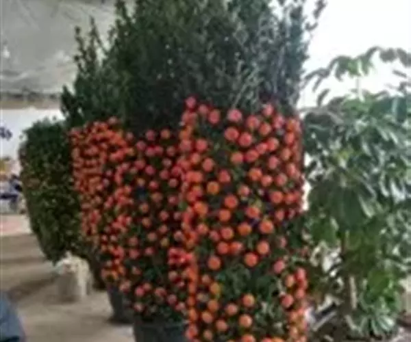 朱砂桔是中国传统的观果类柑桔的一个重要品种。其果实较金桔大,色偏桔红,观赏效果较好。元旦和春节时布置在室内、门厅等处,甚受欢迎。