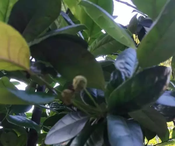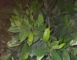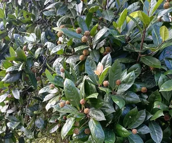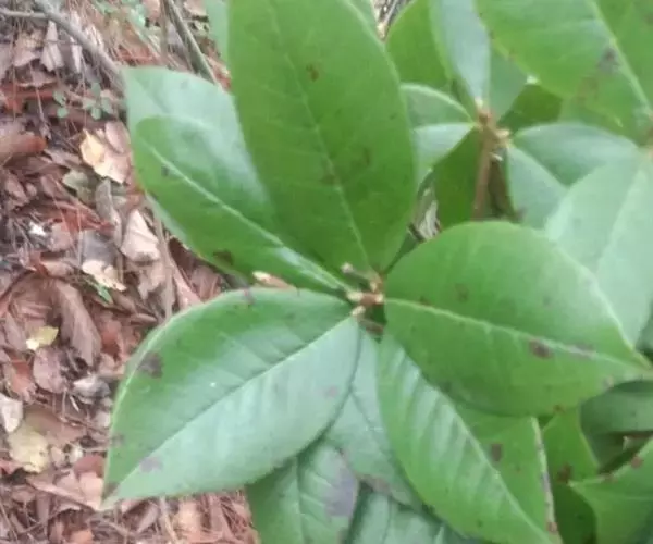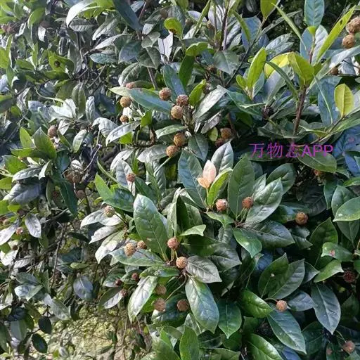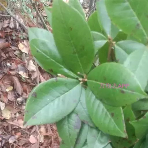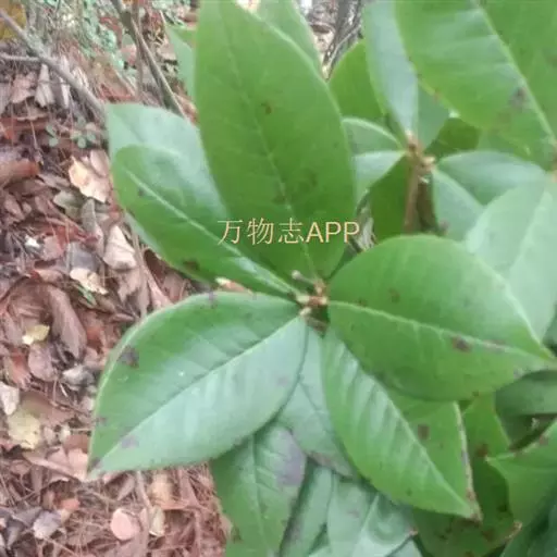 叶革质或厚革质,二年生,倒卵状矩圆形,长7-13厘米,宽3-4.5厘米;先端短急尖,有时略钝,基部楔形;上面深绿色,干后稍发亮;下面浅绿色,无毛;侧脉约7对,在上下两面均突起,网状小脉在上面很明显,在下面稍突起,边缘有钝锯齿,叶柄长约1厘米,无毛,稍粗壮;托叶细小,早落。