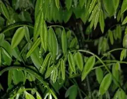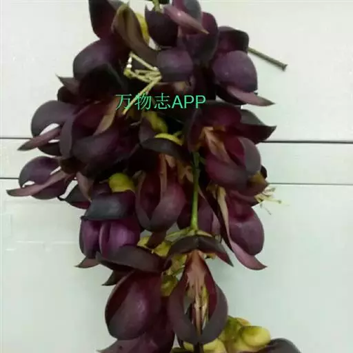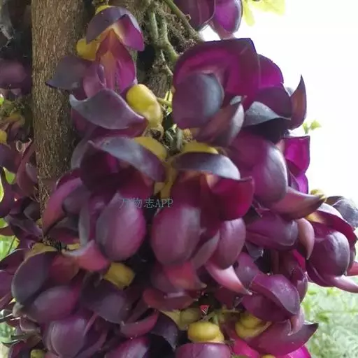 白花油麻藤(Mucuna birdwoodiana Tutcher),蝶形花科黎豆属,又名禾雀花、常绿木质大型藤本。该种生长迅速,蔓茎粗壮,叶繁荫浓,茎长可达30米以上,其生命力顽强,能盘树缠绕,越冠飞枝,攀石穿缝。其花序悬挂于悠长盘曲的老茎上,吊挂成串,每串二、三十朵,串串下垂。酷似无数白中带翠,如玉温润的小鸟栖息在枝头。